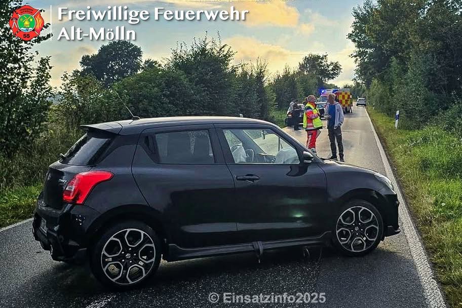 Am 26.06.2025 um ca. 20.00 Uhr kam ein PKW in einer Linkskurve von der Straße ab und auf der Fahrerseite liegend zum Stehen.